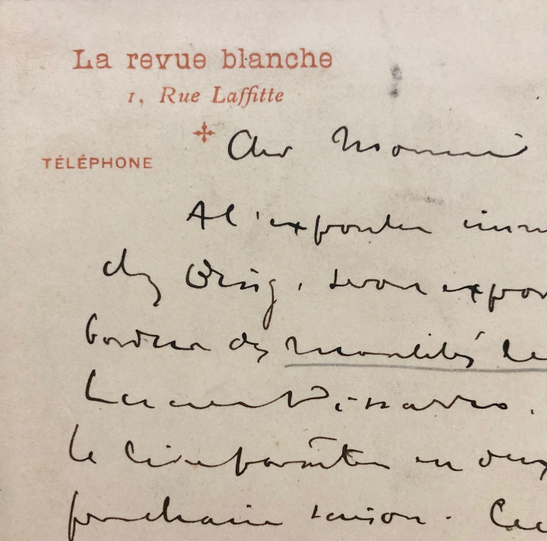 Carte autographe signée adressée à Léon-Paul Fargue – Paris, 6 mai 1806 – 1 page in-12 obl. à en-tête de la Revue blanche.