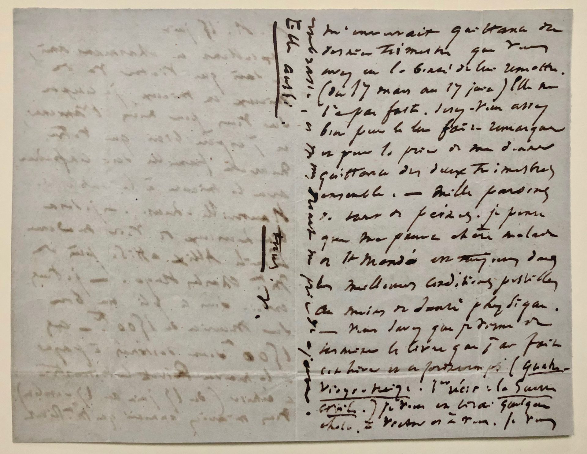 « Je pense que ma pauvre chère malade à Saint-Mandé est toujours dans les meilleures conditions possibles au moins de santé physique. »